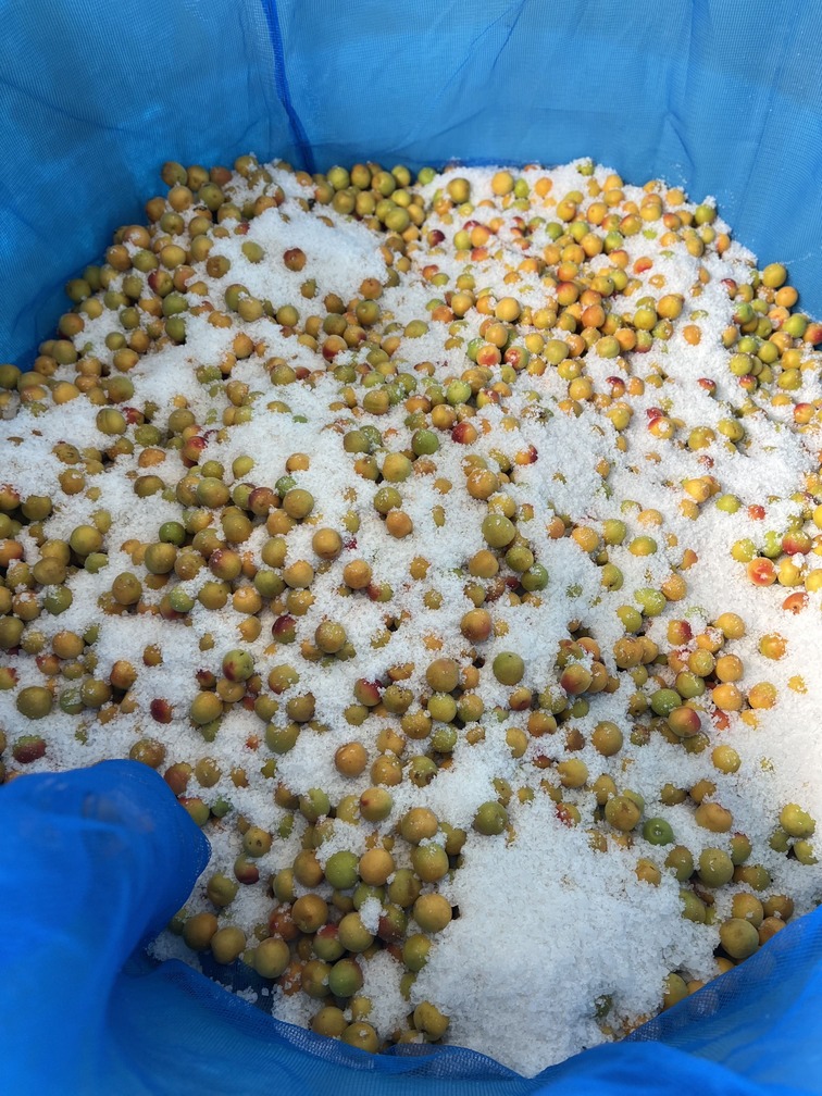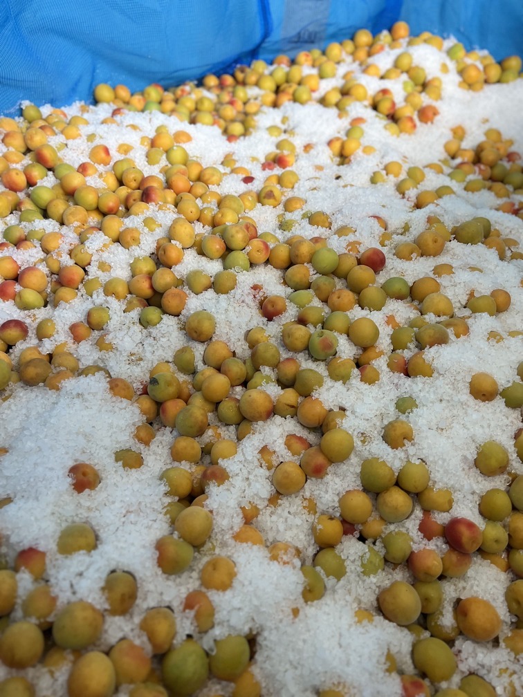 完熟なので、収穫後は間を置かず塩漬けへ。