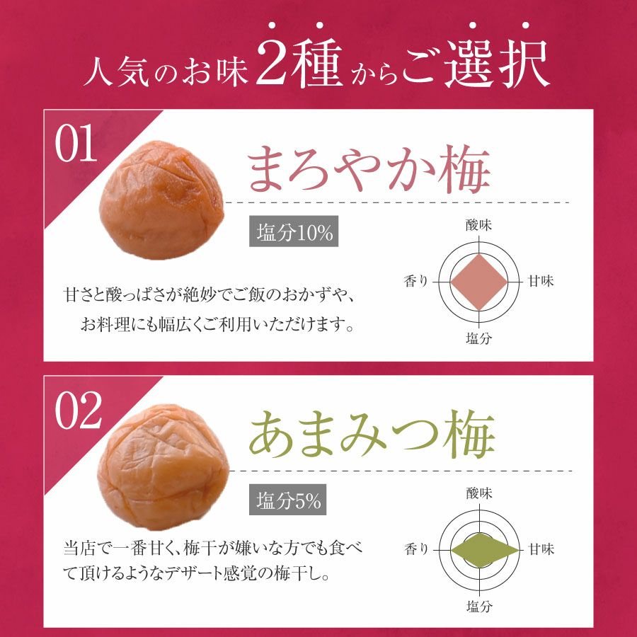■梅の種類:紀州特選南高梅まろやか梅・あまみつ梅
