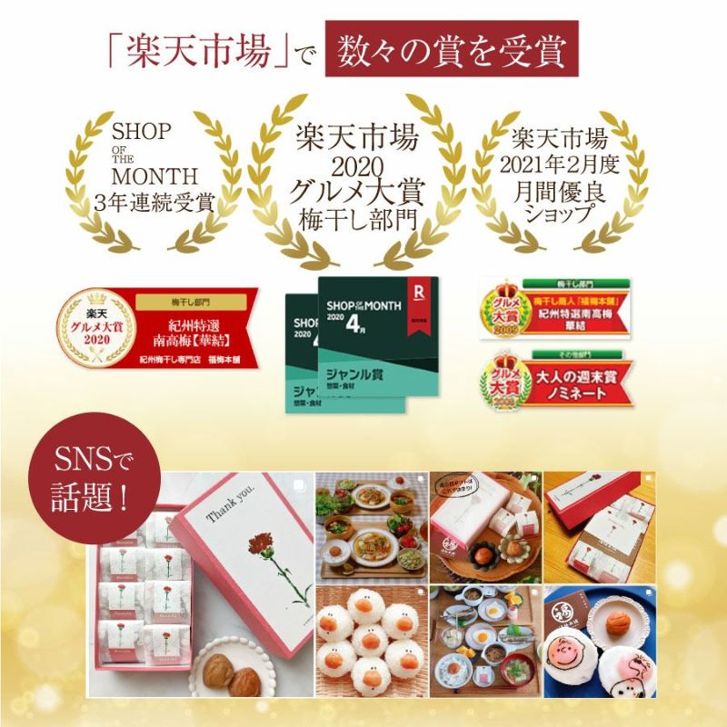 「福梅本舗」は 国内最大級の5万店が出店する「楽天市場」で 数々の賞を受賞