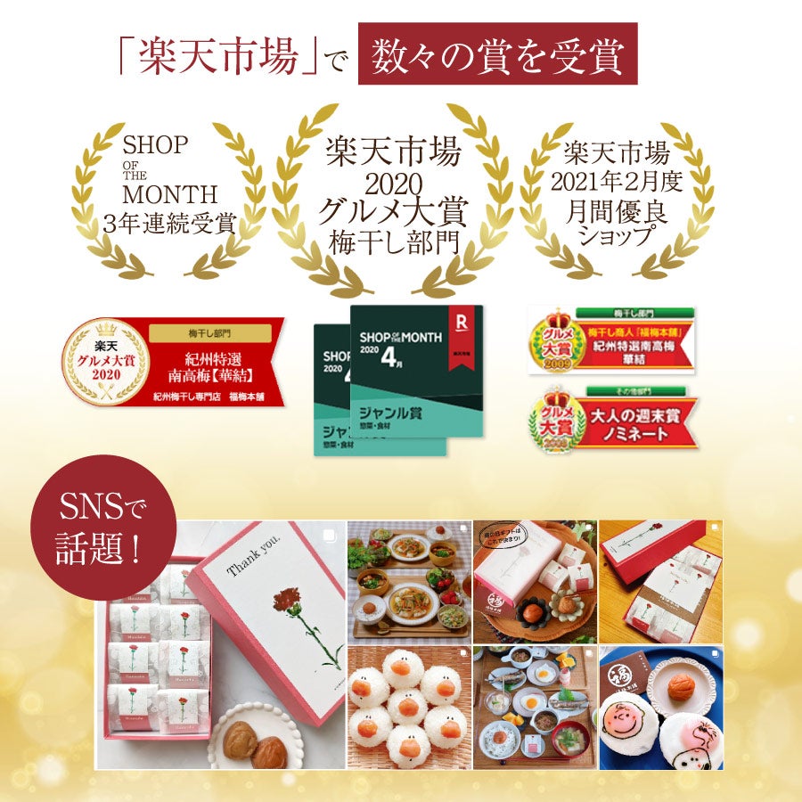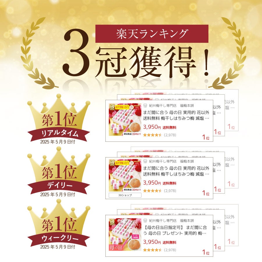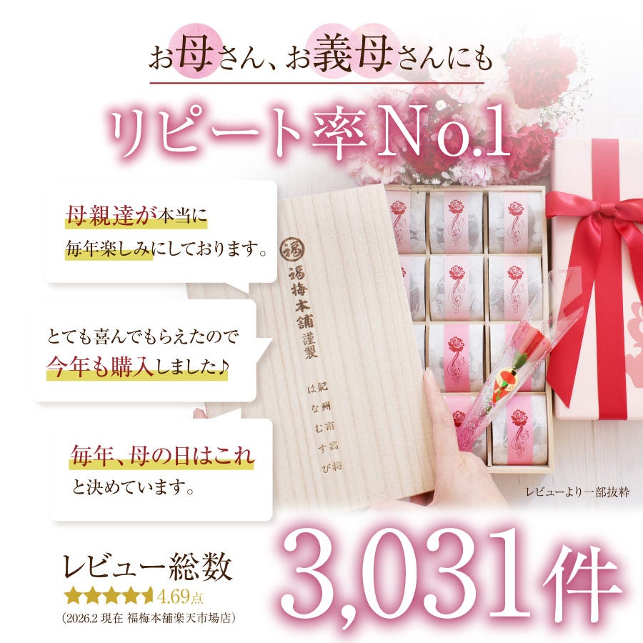 他の画像を見る 母の日\超早割500円OFF/3/11(木)09:59まで※会員割引対象外 【母の日限定】 特選紀州南高梅 華結 (はなむすび) 12粒入 送料無料 人気№1 木箱入 定価 ¥ 3,950 のところ 当店特別価格 ¥ 3,450 税込 販売期間 2026/03/01 10:00 〜 2026/05/18 9:59 商品詳細を見る お気に入りに登録する