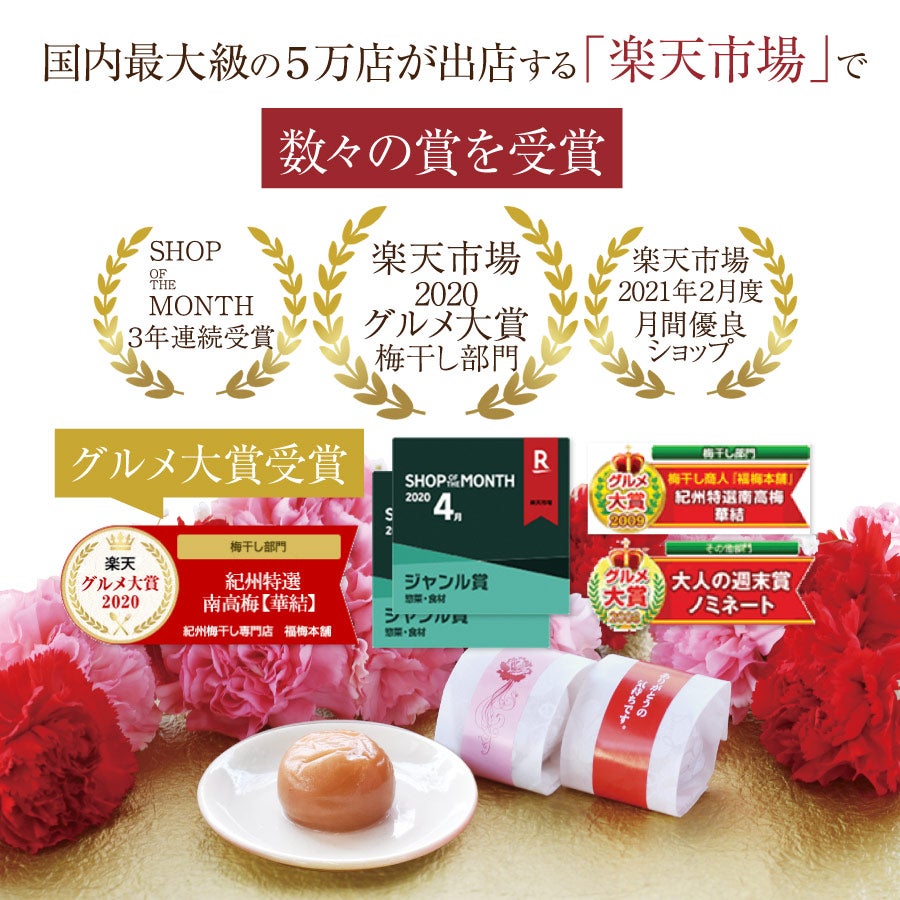 他の画像を見る 母の日\超早割500円OFF/3/11(木)09:59まで※会員割引対象外 【母の日限定】 特選紀州南高梅 華結 (はなむすび) 15粒入 定価 ¥ 4,800 のところ 当店特別価格 ¥ 4,300 税込 販売期間 2026/03/01 10:00 〜 2026/05/18 9:59 商品詳細を見る お気に入りに登録する