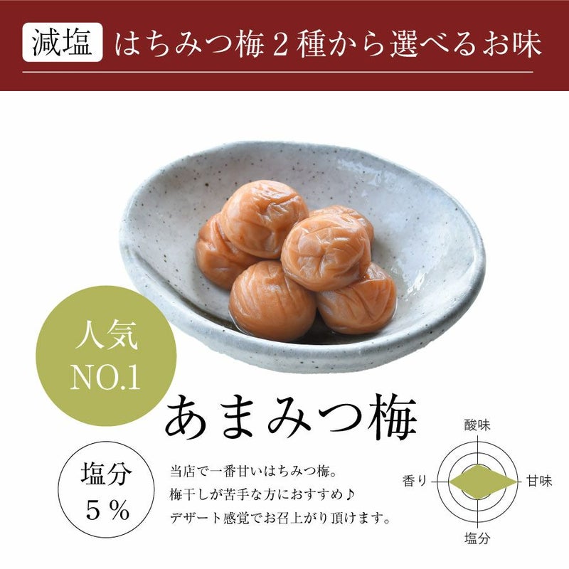 ■梅の種類:紀州特選南高梅まろやか梅(はちみつ梅)またはあまみつ梅