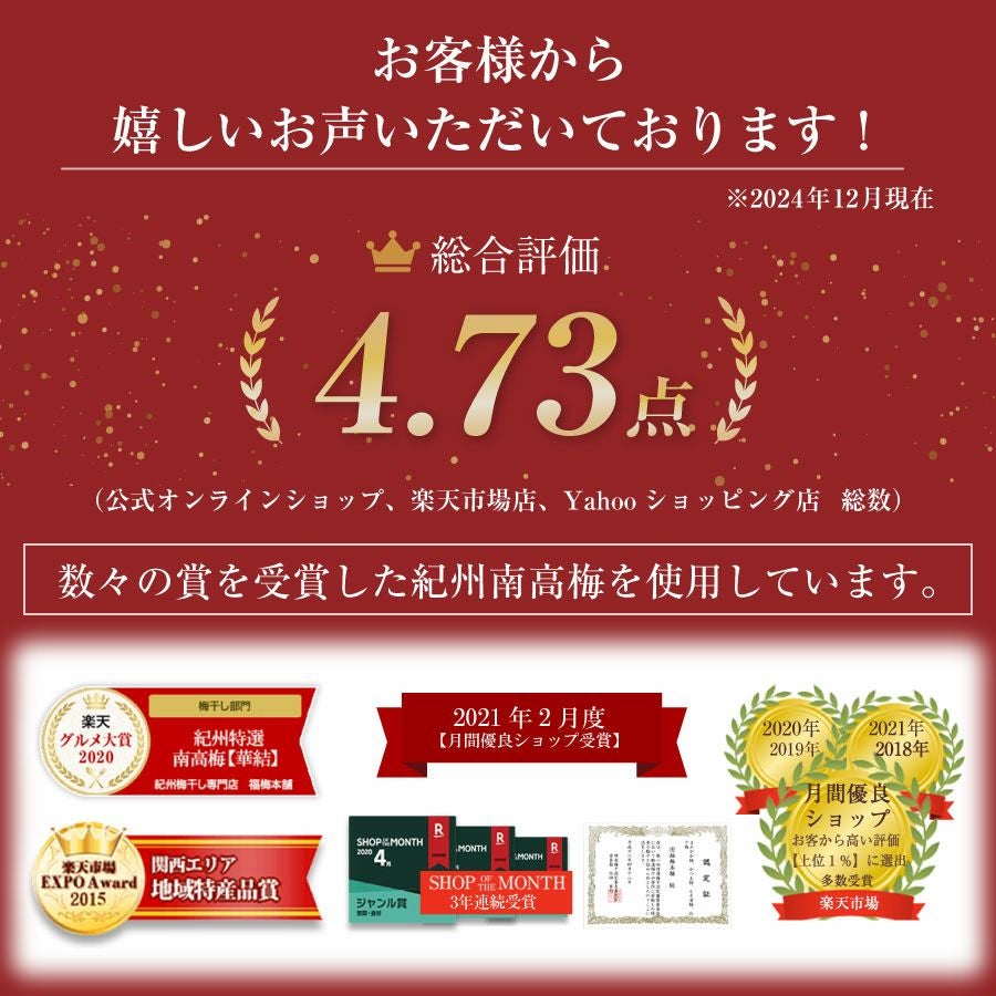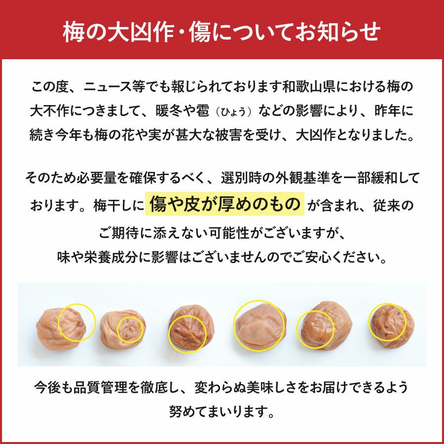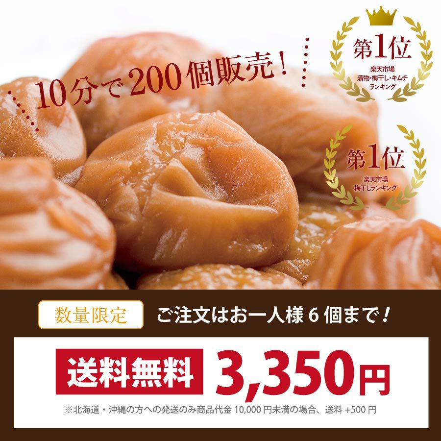 他の画像を見る 最高品質の紀州南高梅干しのお得パック 訳あり!【つぶれ梅干し 750g 】 数量限定!送料無料 送料無料 訳あり 大容量 定価 ¥ 3,350 のところ 当店特別価格 ¥ 3,350 税込 会員価格あり 商品詳細を見る お気に入りに登録する