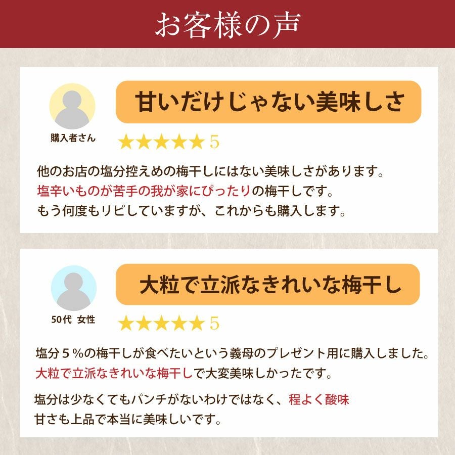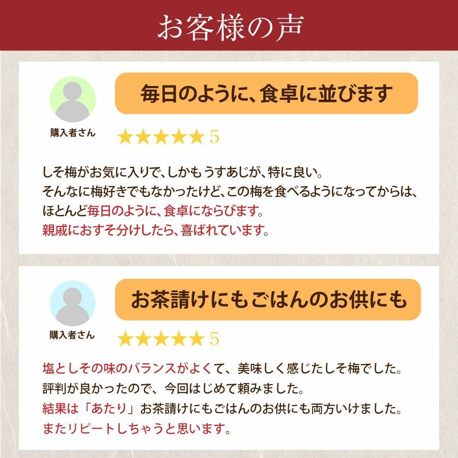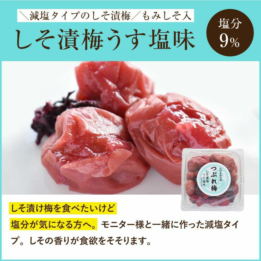 他の画像を見る 特選紀州南高梅 しそ漬梅うす塩味250g(塩分約9%)食べやすい減塩のしそ漬梅干し あまい しそ 定価 ¥ 1,700 のところ 当店特別価格 ¥ 1,530 税込 会員価格あり 商品詳細を見る お気に入りに登録する