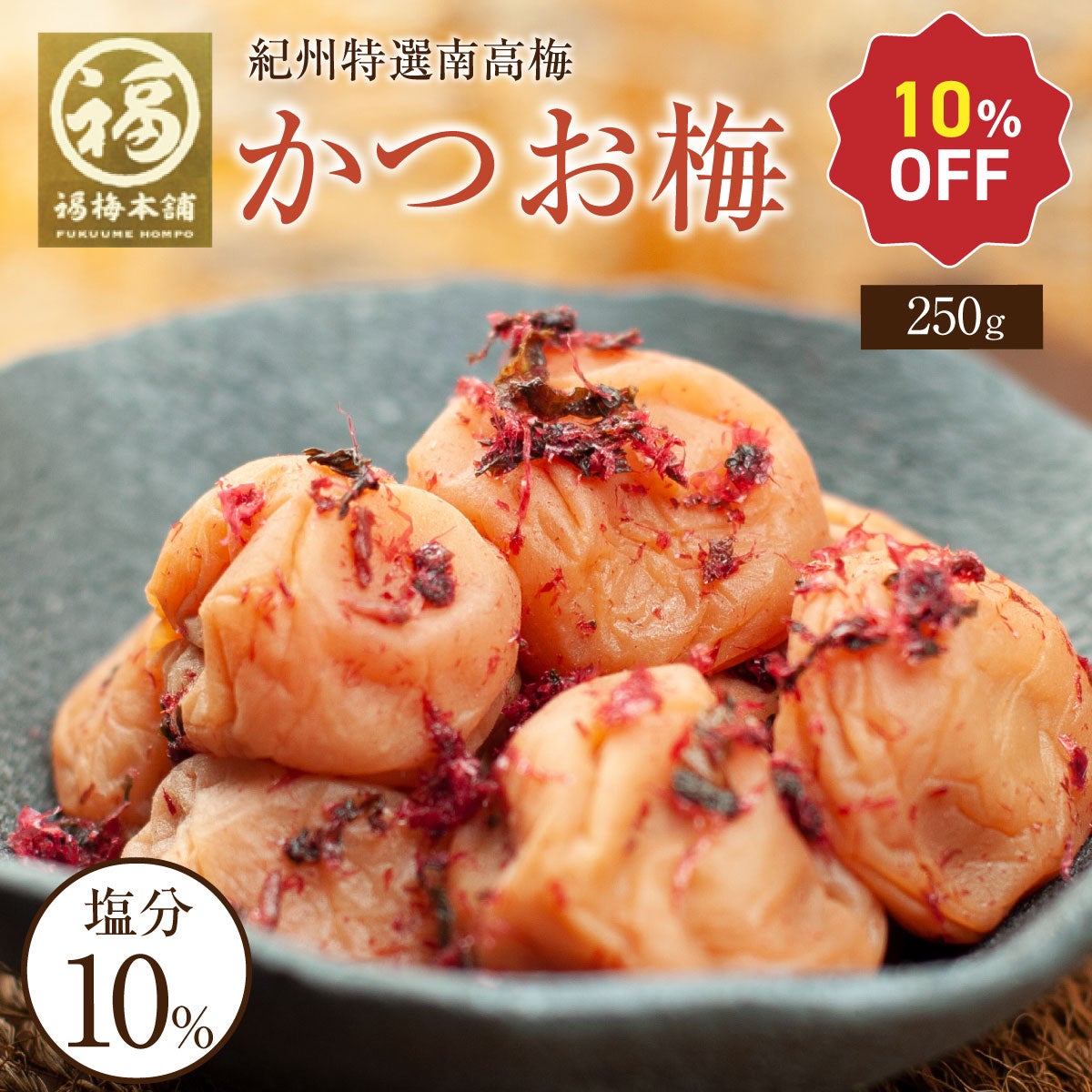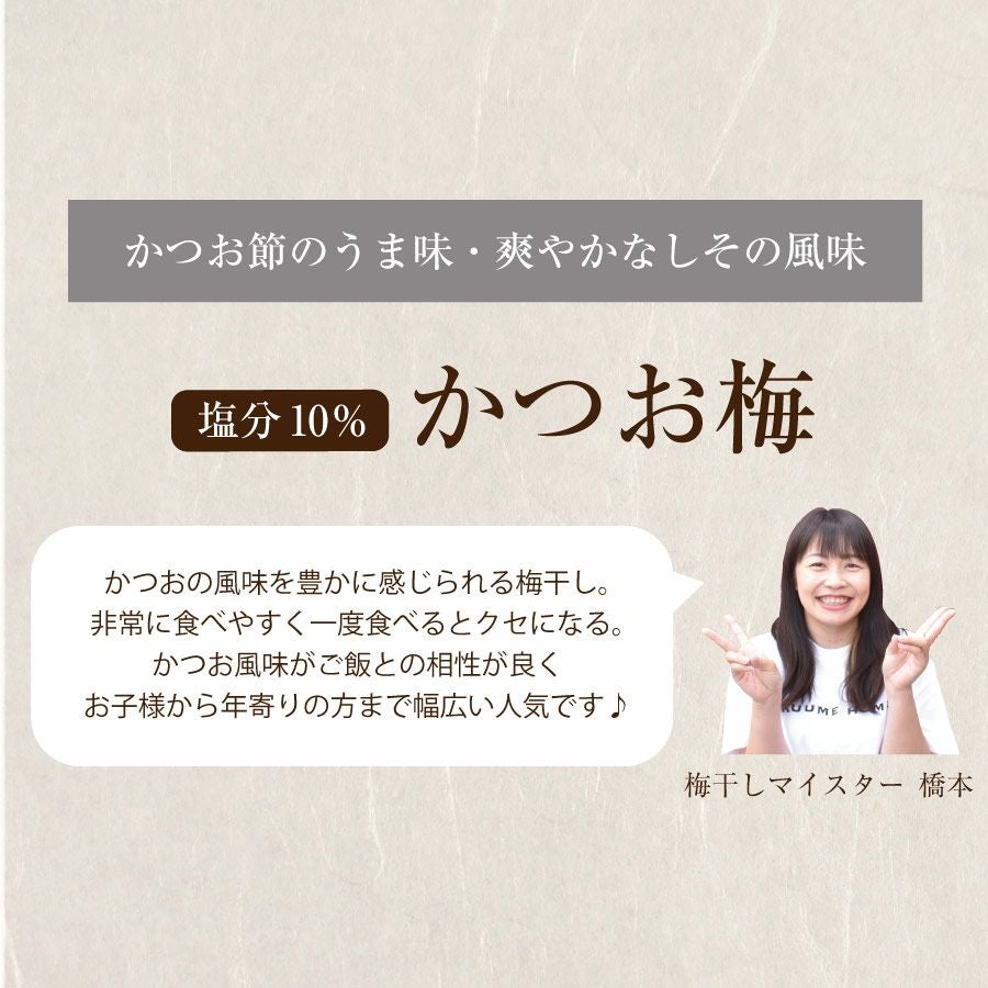 他の画像を見る 特選紀州南高梅【 かつお梅(塩分約10%)250g】ほどよい酸味にしそとかつお節の風味が絶妙 かつお 塩分10% 定番 定価 ¥ 1,700 のところ 当店特別価格 ¥ 1,530 税込 会員価格あり 商品詳細を見る お気に入りに登録する