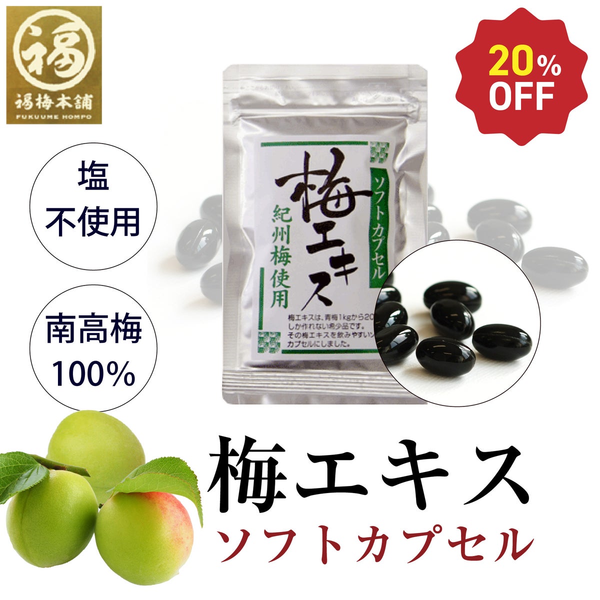 他の画像を見る サプリメント感覚で梅エキスを【梅エキス(梅肉エキス)ソフトカプセル 45粒】 塩分0% 無添加 カプセル 定価 ¥ 1,550 のところ 当店特別価格 ¥ 1,240 税込 会員価格あり 商品詳細を見る お気に入りに登録する