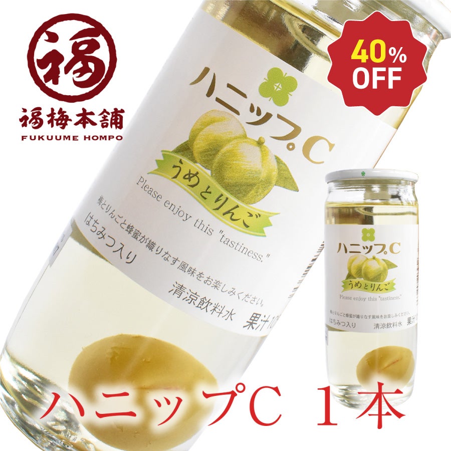 他の画像を見る \30%OFF/ 【南高梅使用】ハニップC1本 ※お一人様4本限り お子さまに 梅の実入 定価 ¥ 250 のところ 当店特別価格 ¥ 150 税込 商品詳細を見る お気に入りに登録する