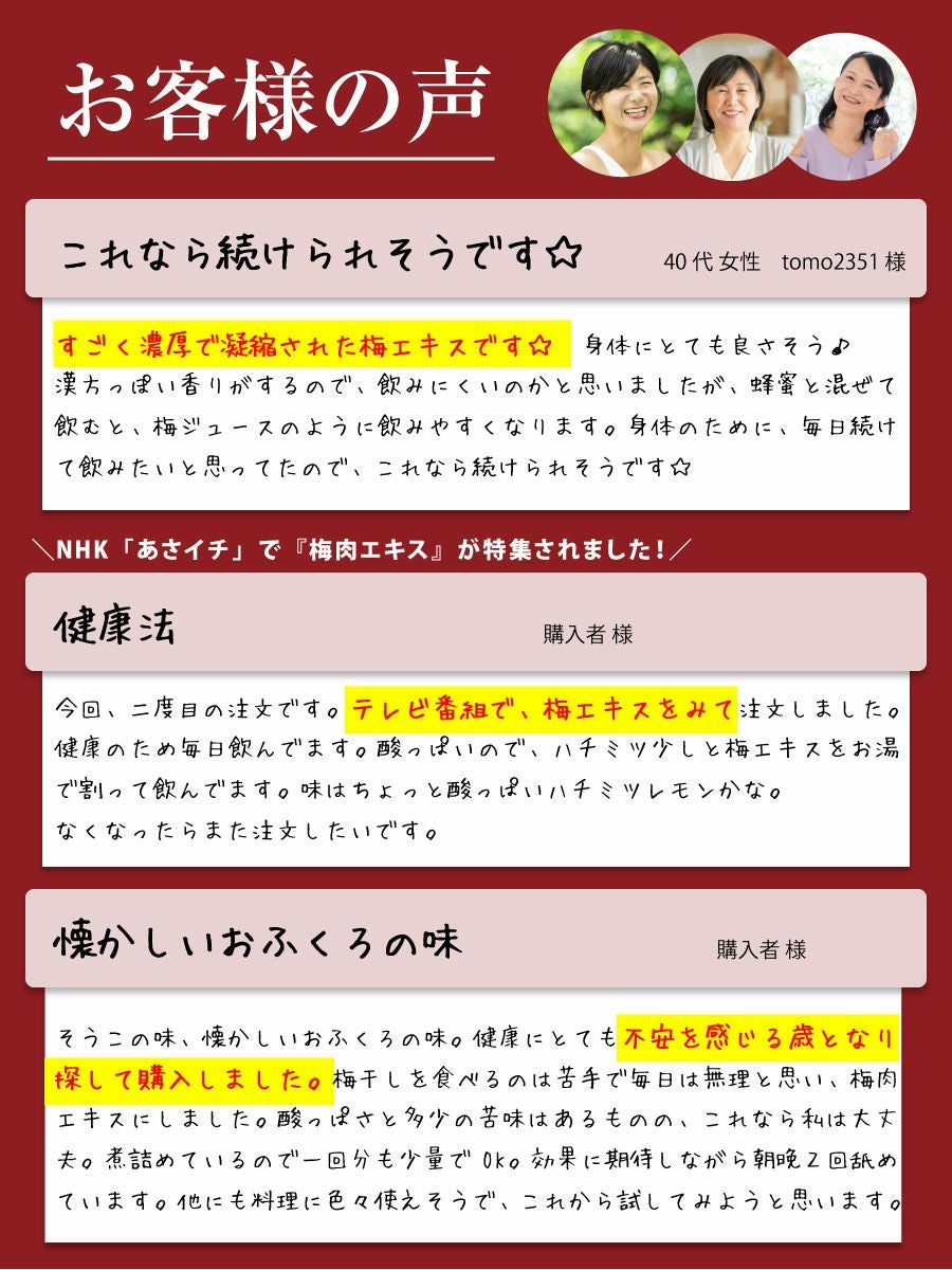 他の画像を見る \塩分0%完全無添加/ 青梅の果汁を煮詰めて作る昔からの梅の健康食品 【梅エキス(梅肉エキス)練状45g】 塩分0% 無添加 練状 定価 ¥ 2,600 のところ 当店特別価格 ¥ 2,340 税込 会員価格あり 商品詳細を見る お気に入りに登録する