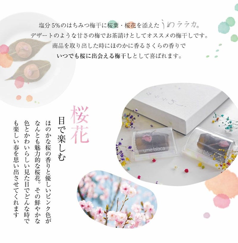 梅、桜葉、桜花、漬け原材料〔砂糖、還元水飴、食塩、りんご酢、蜂蜜〕、酸味料、酒精、ビタミンB1 (原材料の一部にりんごを含む