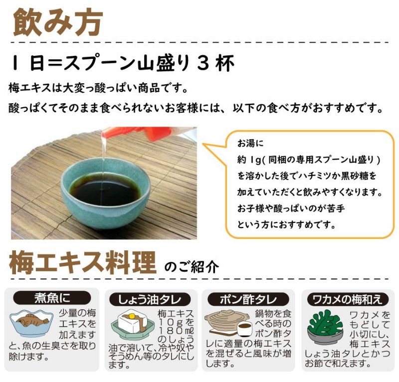 梅エキス 10gを 180ml のしょう油 で溶いて、冷や奴やそうめん等のタレにします。