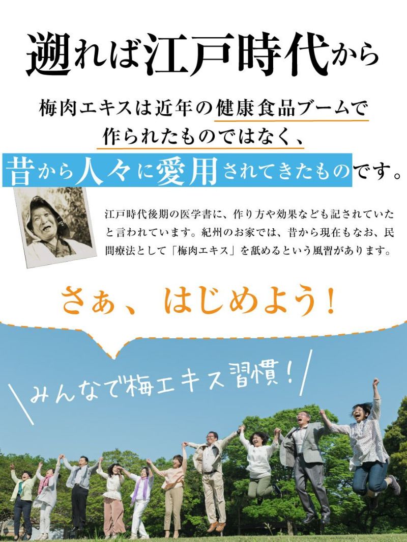梅肉エキスは近年の健康食品ブームで 作られたものではなく、 昔から人々 に愛用されてきたもの です。