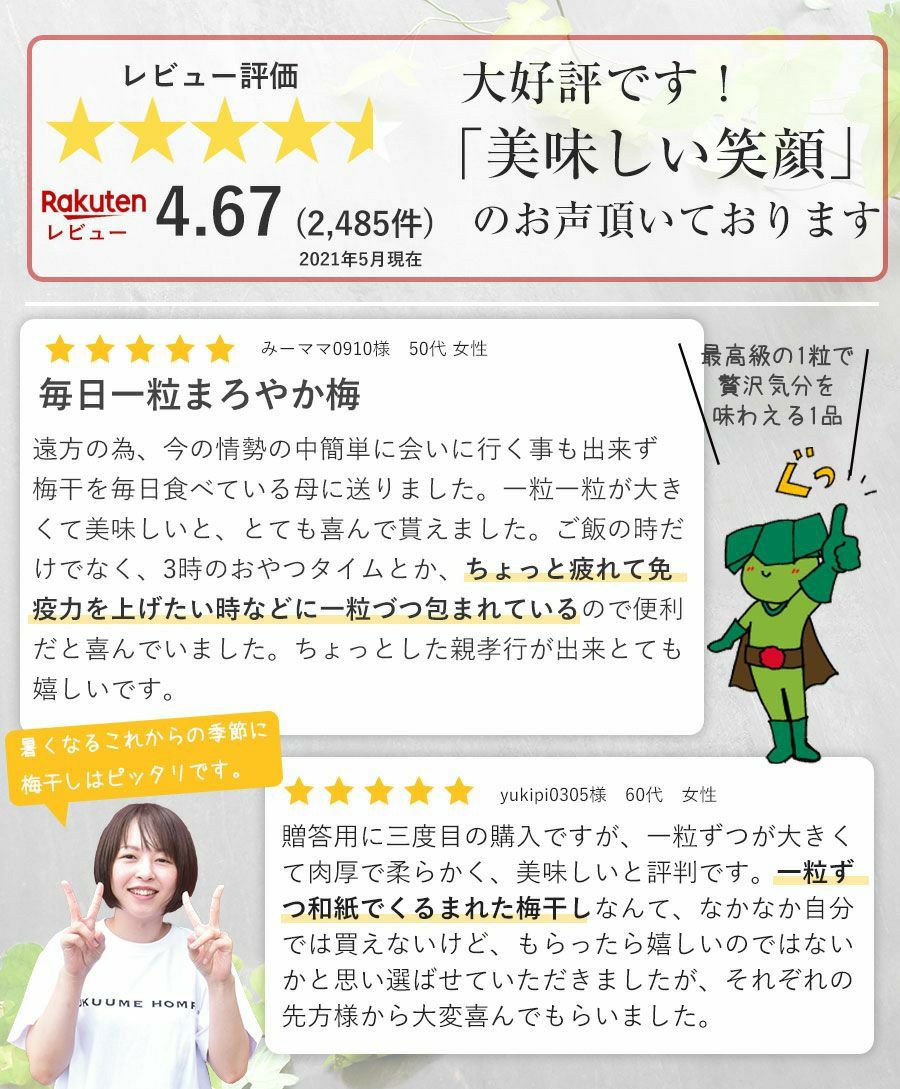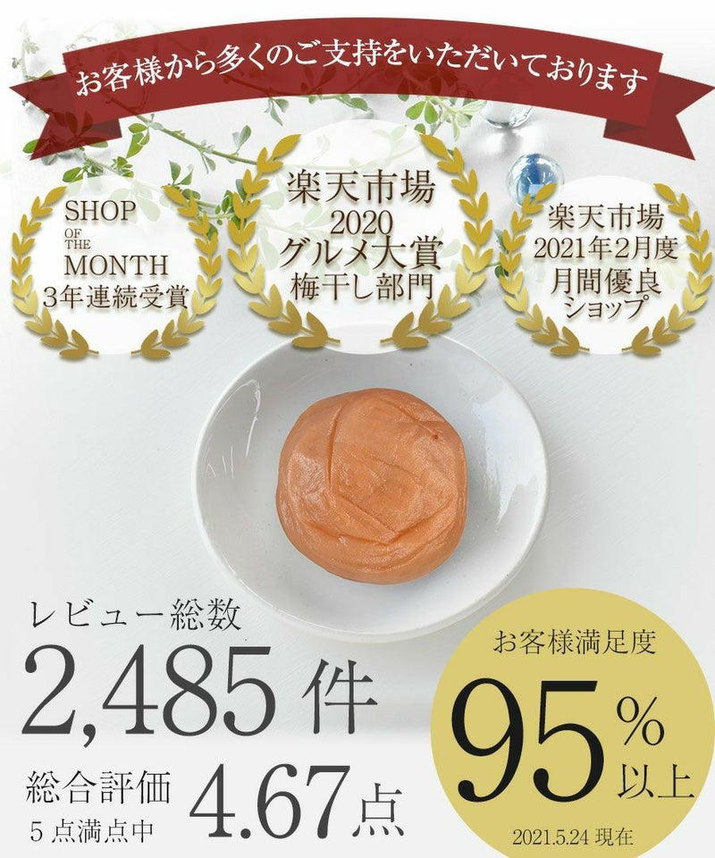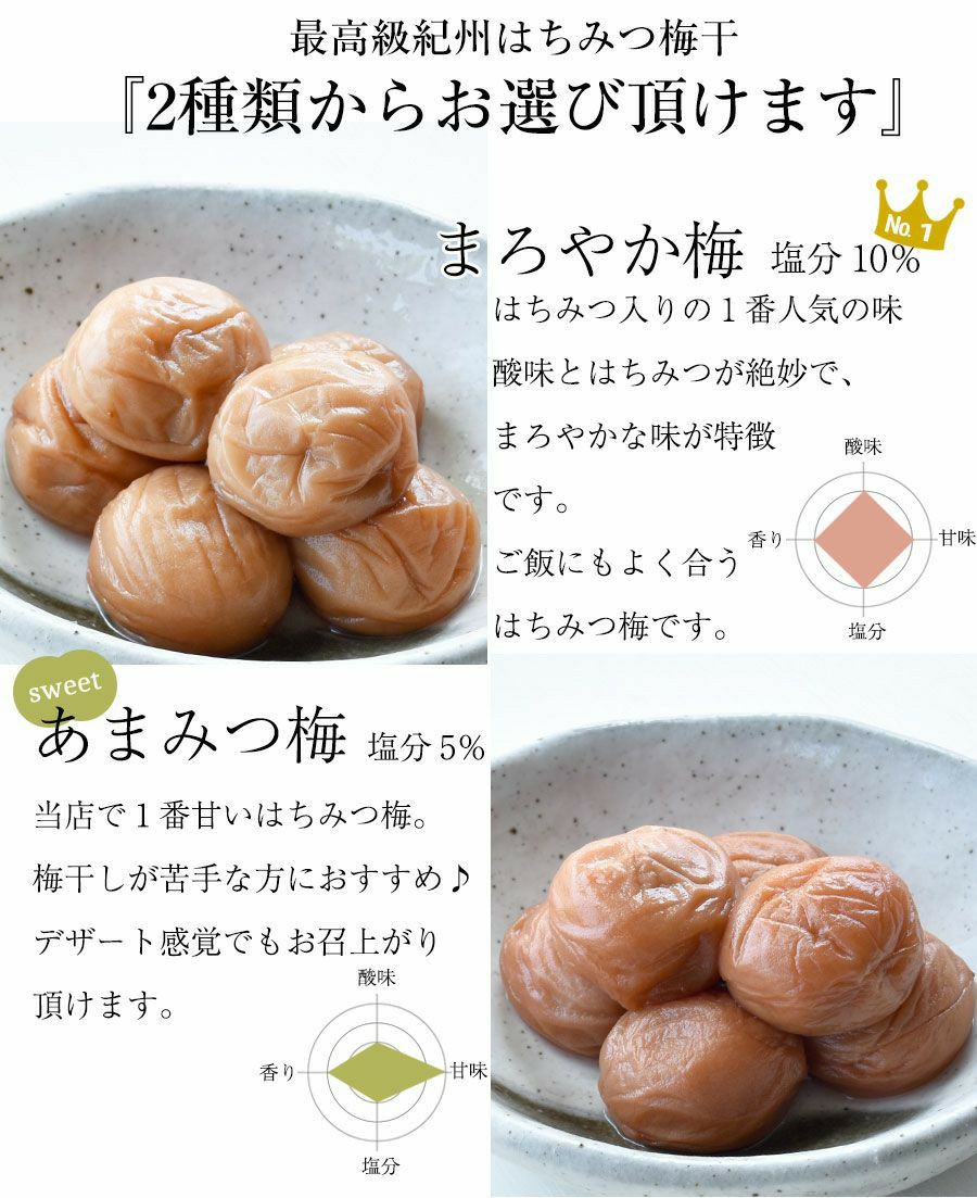 ■梅の種類:紀州特選南高梅まろやか梅(はちみつ梅)またはあまみつ梅