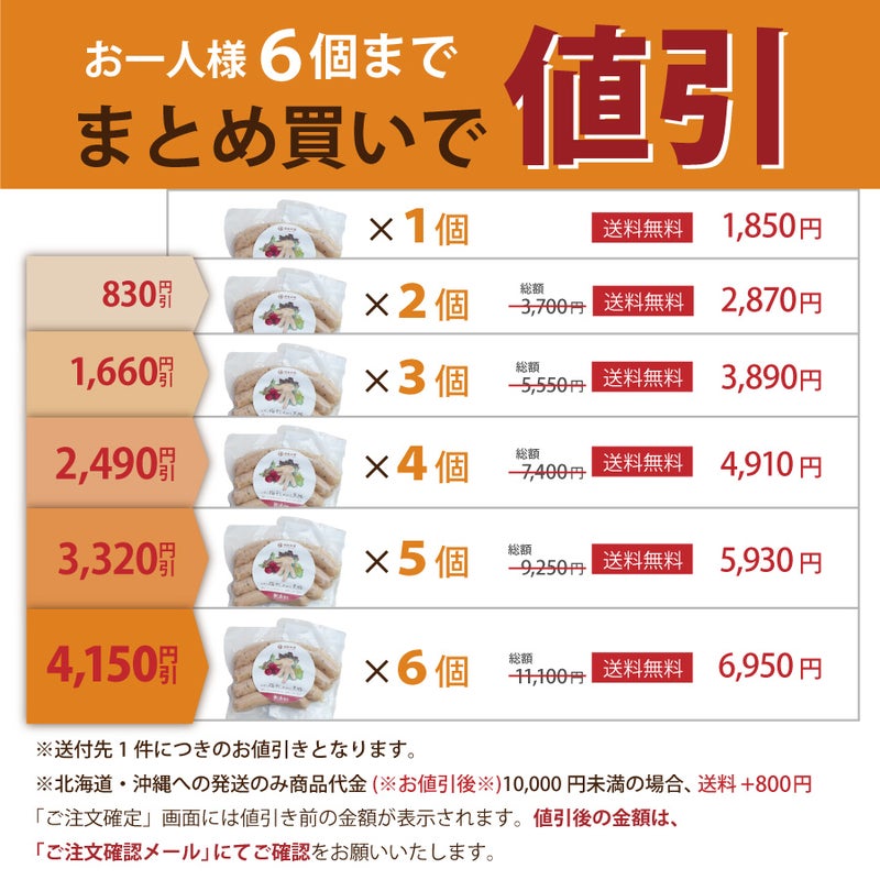 ※送付先1件につきのお値引きとなります。 ※北海道・沖縄への発送のみ商品代金(※お値引後※)10,000円未満の場合、送料+800円
