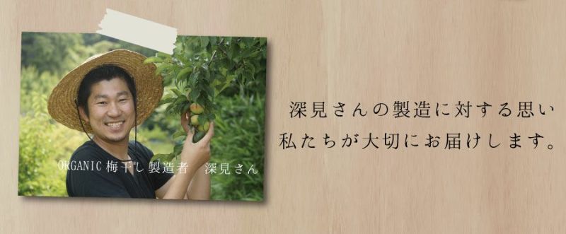 しそ漬け梅干しに使用しているのは和歌山県産の 有機赤紫蘇。有機栽培で育てた国産の数少ない 赤紫蘇を使っています。 独自の配合レシピにて有機梅と有機赤紫蘇を 交互に漬け込みます。赤紫蘇の風味豊かな香りと 梅干しの酸味がマッチした昔ながらの紫蘇梅干し。 無添加にて化学調味料を一切使用していない 綺麗なルビー色が特徴的の梅干しです。