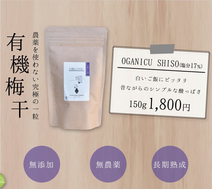 他の画像を見る \無添加・無農薬/ 梅干し 無添加 有機梅干し 紀州南高梅 ORGANIC SHISO 150g 当店特別価格 ¥ 1,800 税込 会員価格あり 在庫切れ 商品詳細を見る お気に入りに登録する