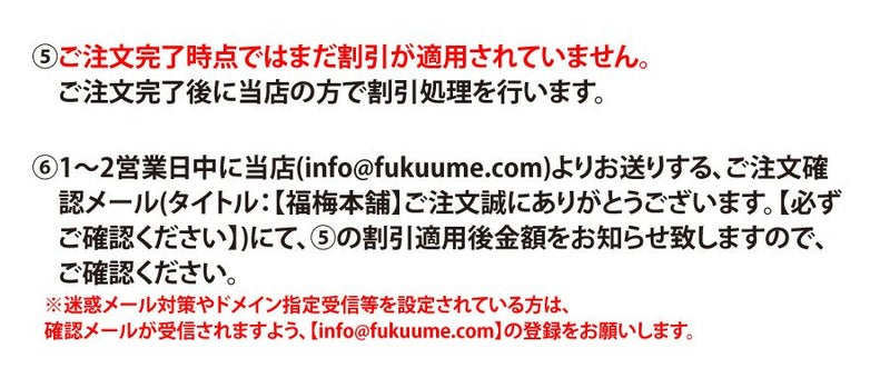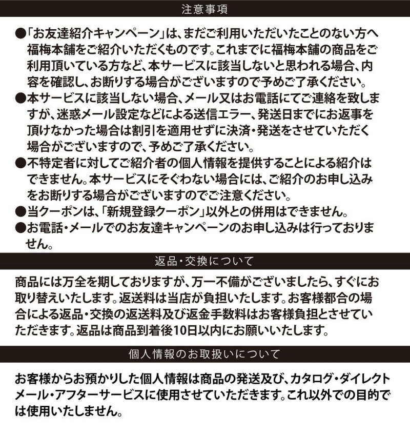 商品の方には万全を期しておりますが万が一、商品に汚損・破損などございましたら 商品到着から10日以内にinfo@fukuume.comまでご一報下さいませ。 メール確認後スタッフが早急に返品についてのご連絡を致します。
