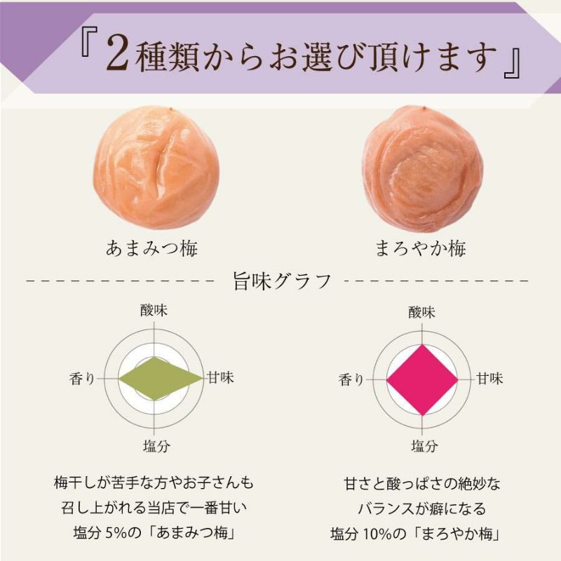 ■梅の種類:紀州特選南高梅まろやか梅(はちみつ梅)またはあまみつ梅