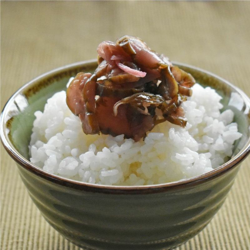 昆布、なす、生姜を食べやすく刻んで一緒に漬込みました。 梅肉のほどよい酸味と昆布の旨味のコンビネーション、 なすの食感と生姜のアクセントが、あとひく美味しさです。