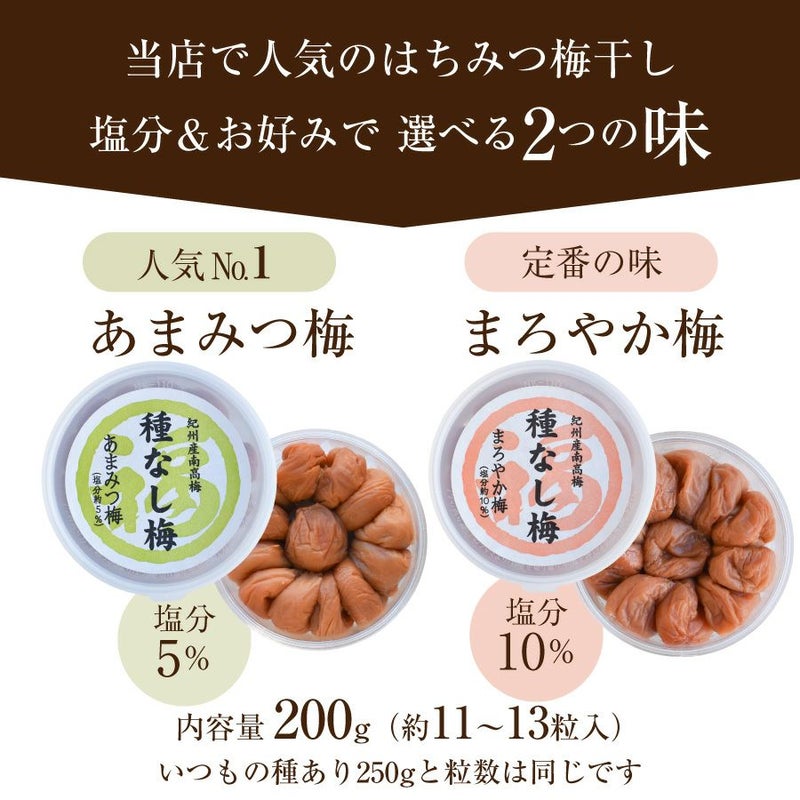 ■塩分:あまみつ梅:5%/まろやか梅(塩分10%)