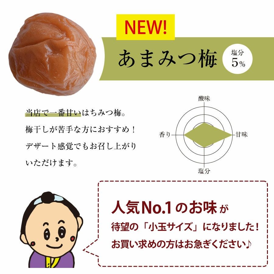 他の画像を見る 特選紀州南高梅 あまみつ梅1kg(塩分約5%)減塩のはちみつ梅干し 塩分5% ギフト対応 定価 ¥ 6,800 のところ 当店特別価格 ¥ 6,120 税込 会員価格あり 商品詳細を見る お気に入りに登録する
