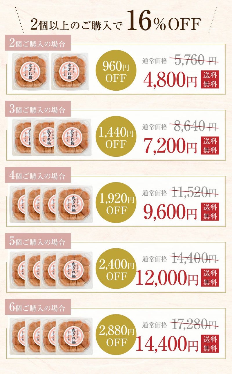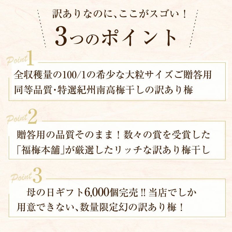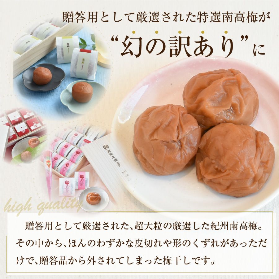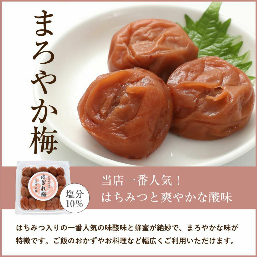 甘いはちみつ梅から、無添加の昔ながらの酸っぱい梅まで、選べるお味は7種類! いつでも買える「訳あり 皮ぎれ梅干し」