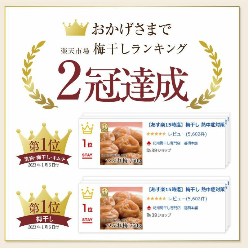 いつも美味しい梅干しをありがとうございます この価格でこの美味しさはやめられません。 いつも1パックですが、1ヶ月持たないので2パックにしてみました また、よろしくお願いします。