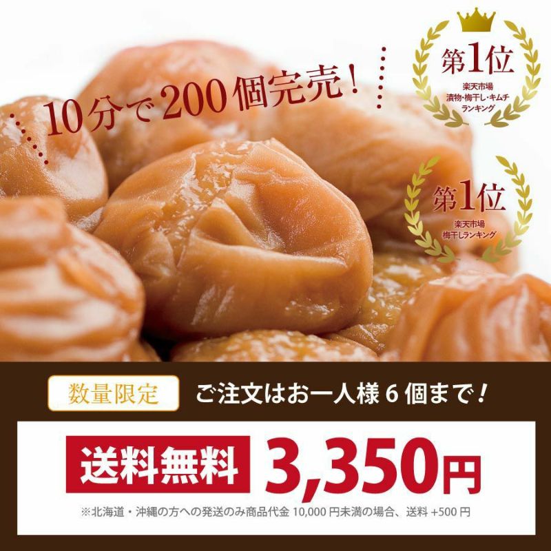 リピートでの購入ですが、本当に大満足のお気に入り商品で、 他の梅干に比べて、塩分も控えめで体にも嬉しい限りでとても 食べやすく、ただ見た目が悪いだけで味は変わらないのにお得 に購入できて、本当に美味しく頂いており大ファンです!