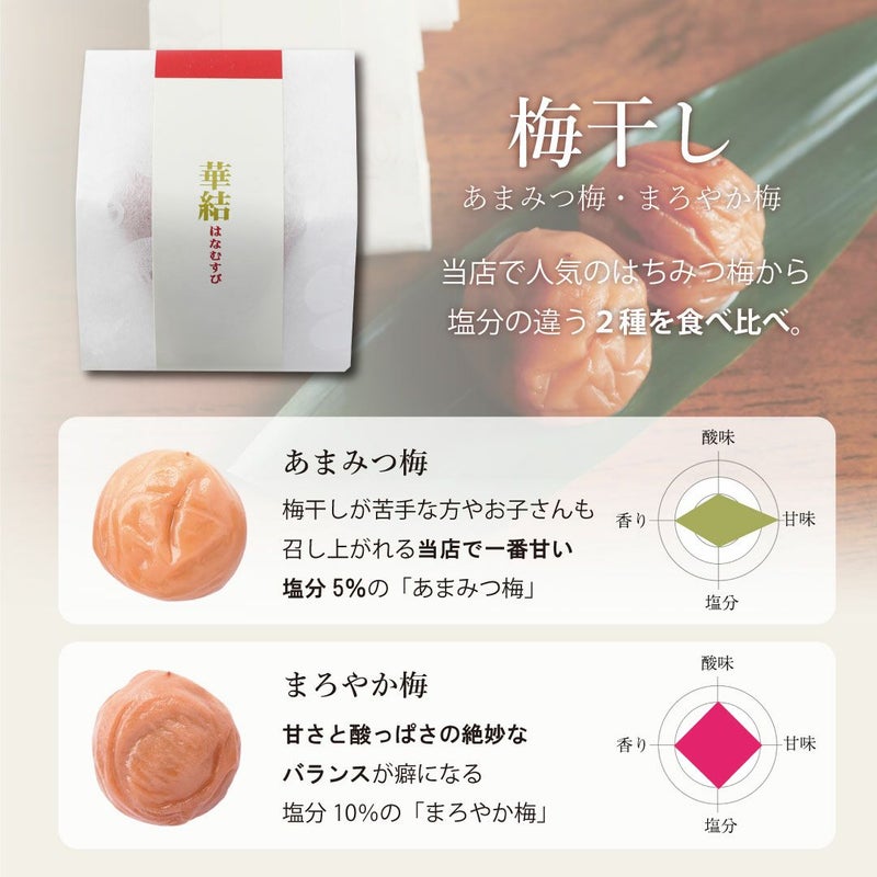 ■セット内容:華結(まろやか梅・あまみつ梅)×各2粒・南高梅酒150ml