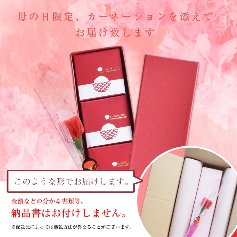 敬老の日に購入させていただきました! パッケージも素敵でギフトに選んでよかったです。 すごく大きい梅に涙を流して喜んでくれました。 敬老の日ギリギリに注文したのに間に合って感謝してます。 ありがとうございました。