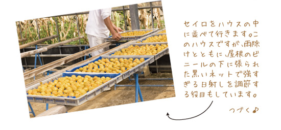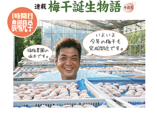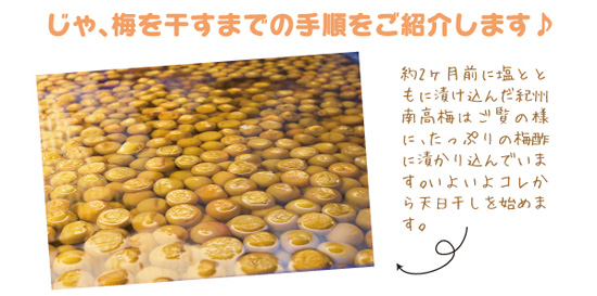 みなさんおはようございま~す♪ボク福梅本舗のマスコットのふくちゃんです。長かった梅雨も明けて、福梅農園では今年の新梅の天日干しが始まりました。強い日射しの中、いよいよ天日干しされる紀州南高梅たち。