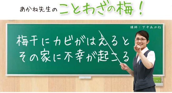 ちょっと怖いことわざですが、理由を知ると「なるほど!」と思ってしまう真実が隠されています。この場合の梅干は白干梅であり、天日干しする前の塩漬けした梅干の事です。さて、その意味とは、梅干にカビが生えるようでは、梅干を管理する主婦がずぼらな人で家には良いことは起らないと言う意味と、梅干無しの一年を送らねばならず、病気になりやすいと言う意味です。なるほど~!って思っちゃいますよね。あ、完成した白干梅にはカビなんて生えませんよ♪