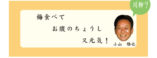福梅本舗のあるじ、小山雅也さんの作品です。おぉ!まるでよく効く胃薬のキャッチコピーのような川柳ですね。梅干は体に良いれけど、年末年始は飲み過ぎに注意して下さいね。