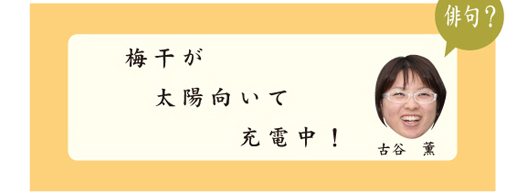 某大学国文科を卒業後、弊社でデザインを担当(なんで?)している古谷さんの作品です。真夏の太陽から梅干がエネルギーを充電!この発想いいですよね!もちろん福梅本舗の梅干は100%充電のエネルギー満タンです^^