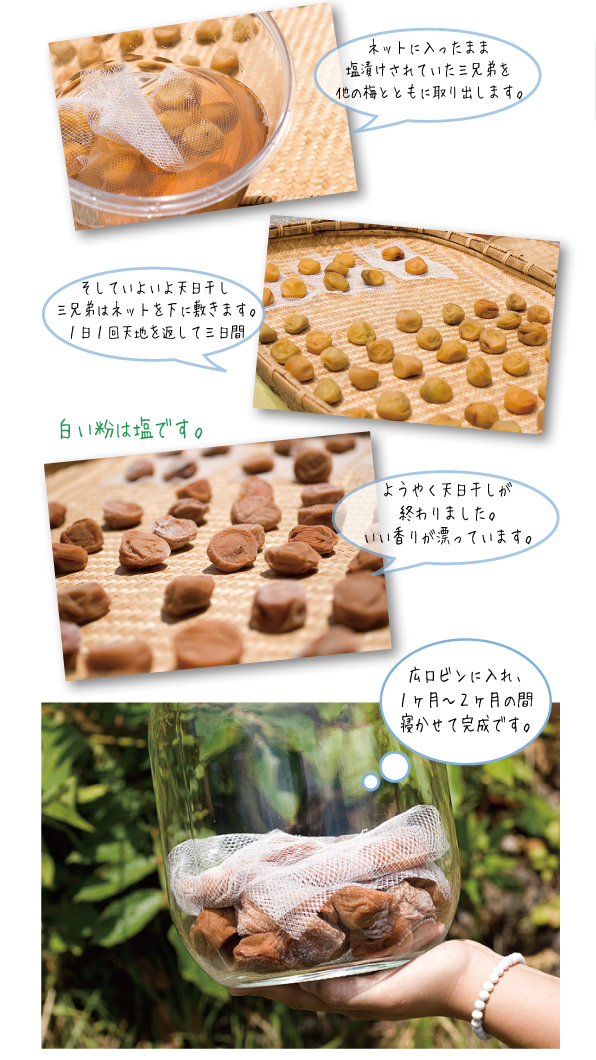 おはようございます。ふくちゃんです。今は紀州では、梅干の天日干しの真っ最中です。福梅農園でも天日干しを日々行っていますが、今回ご紹介するのは、てらこや通信で開花から結実、そして収穫までご紹介して来た梅の三兄弟たちです。