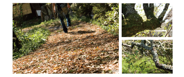 梅の落葉に覆われた梅渓の道を散策すると、紀州の梅の樹とは大きく違う点がありました。それは剪定されていないと言う事です。木の幹には美しいコケがむしていて美しい枝振りです。この梅の樹にたわわに実る梅の実が完熟し、自然に落果するまで待って収穫するのです。