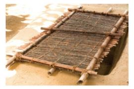 その上に簾を乗て、ススで真黒になった 梅を並べます。簾は2~3段重ねるそう です。 |
