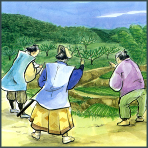 これを見た南部地方を治める「田辺藩主」安藤帯刀は、以前からあった「やぶ梅」に注目し、 米の出来ないやせ地や山の斜面に生命力のある梅を植えさせ、年貢の軽減と農作物の育成に努めました。