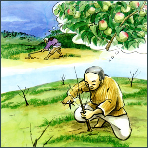 人々の中傷にもめげず、黙々と梅を植え続け、実梅が育つ夢を見た二人でした。