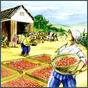 晩稲でも耕地を広げ、梅作りをする人々が登場します。