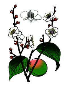和名は薬用にする鳥梅、または梅の漢音meiから転訛したものといわれています。漢名は梅。