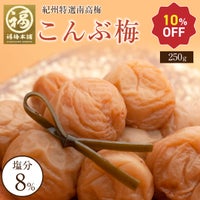 こちらのこんぶ梅を食べてから他の梅干しを買うことがなくなり、こちらのお店でずっとリピートしています。塩分控えめで、そのまま食べても美味しいですし、お料理にもよく使います。