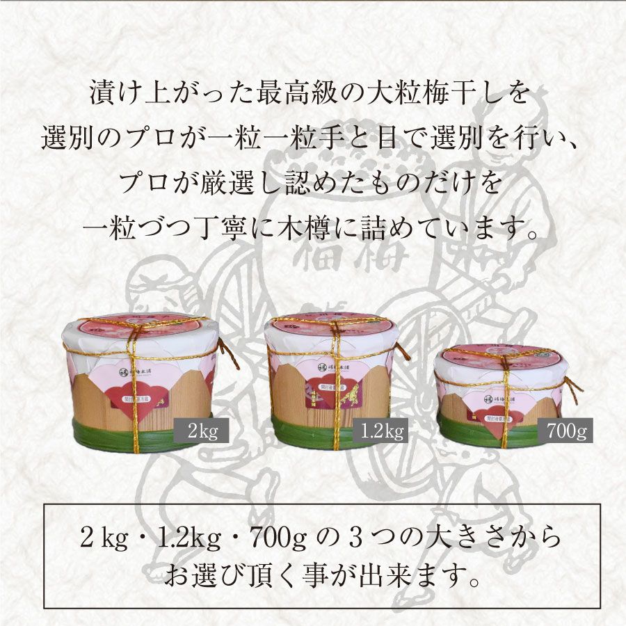 他の画像を見る 【特選紀州南高梅】 特選紀州南高梅懐かしい木の香りが漂う梅干しギフト【木樽(きだる)2kg】 大容量 選べる6種類 木樽入 当店特別価格 ¥ 8,900 税込 会員価格あり 在庫切れ 商品詳細を見る お気に入りに登録する