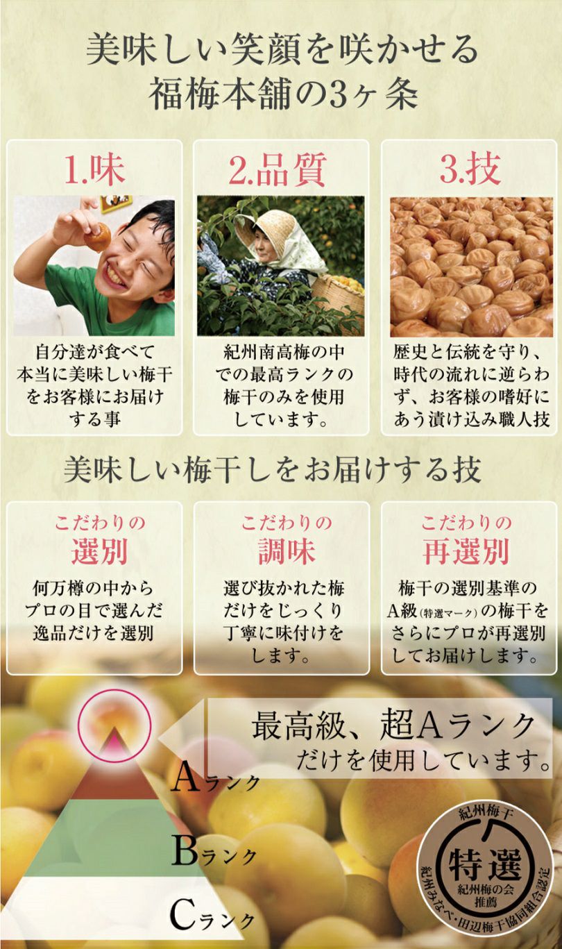他の画像を見る 梅干し 無添加 特選紀州南高梅 白干梅うす塩味300g(塩分約13%)塩だけで漬けた減塩の食べやすい梅干し 定価 ¥ 2,040 のところ 当店特別価格 ¥ 2,040 税込 会員価格あり 商品詳細を見る お気に入りに登録する