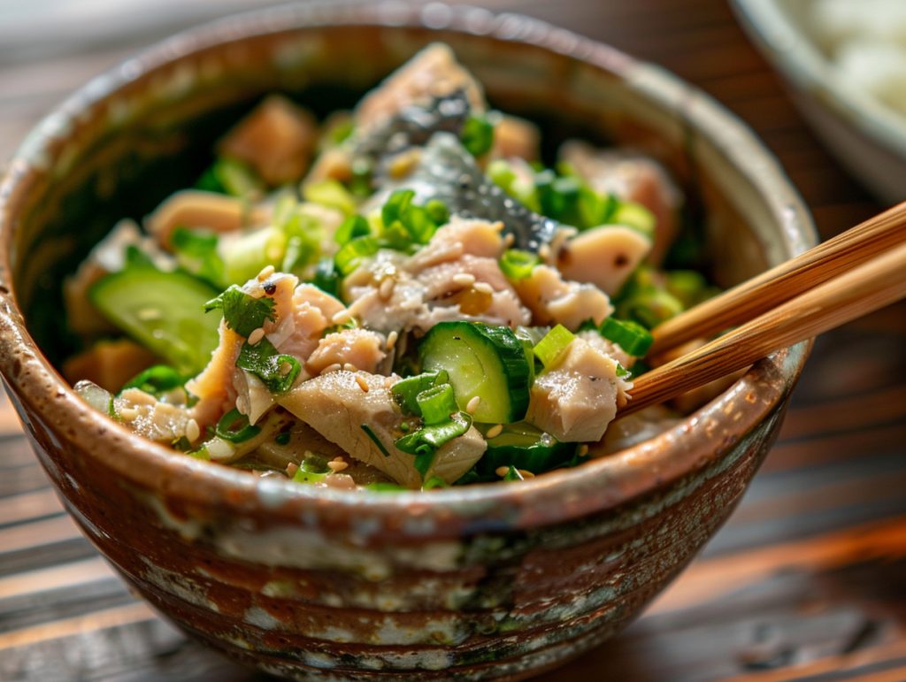 きゅうりの食感と梅の酸味が鯖の旨みを引き立てます。